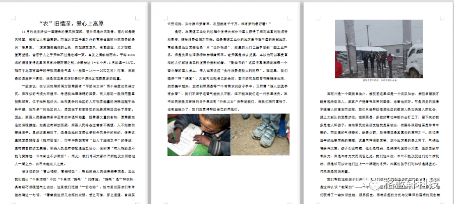 大概是从2012年开始,活动叫“衣+衣等于爱”。记忆深刻的有两次,一次是北京顺义太阳村里有个机构,是专门收养在押人员子女的。都是小孩子,家长犯错孩子可怜。于是为他们捐赠衣服和其他生活、学习用品。后来还有一次是为青海西宁附近的一家养老院,同样是以服装捐赠为主,带了点其他生活用品。说起来都平常的紧,毫无创意。